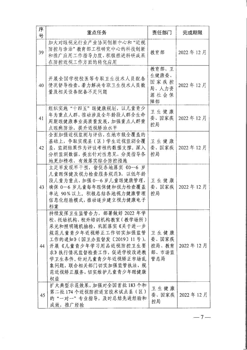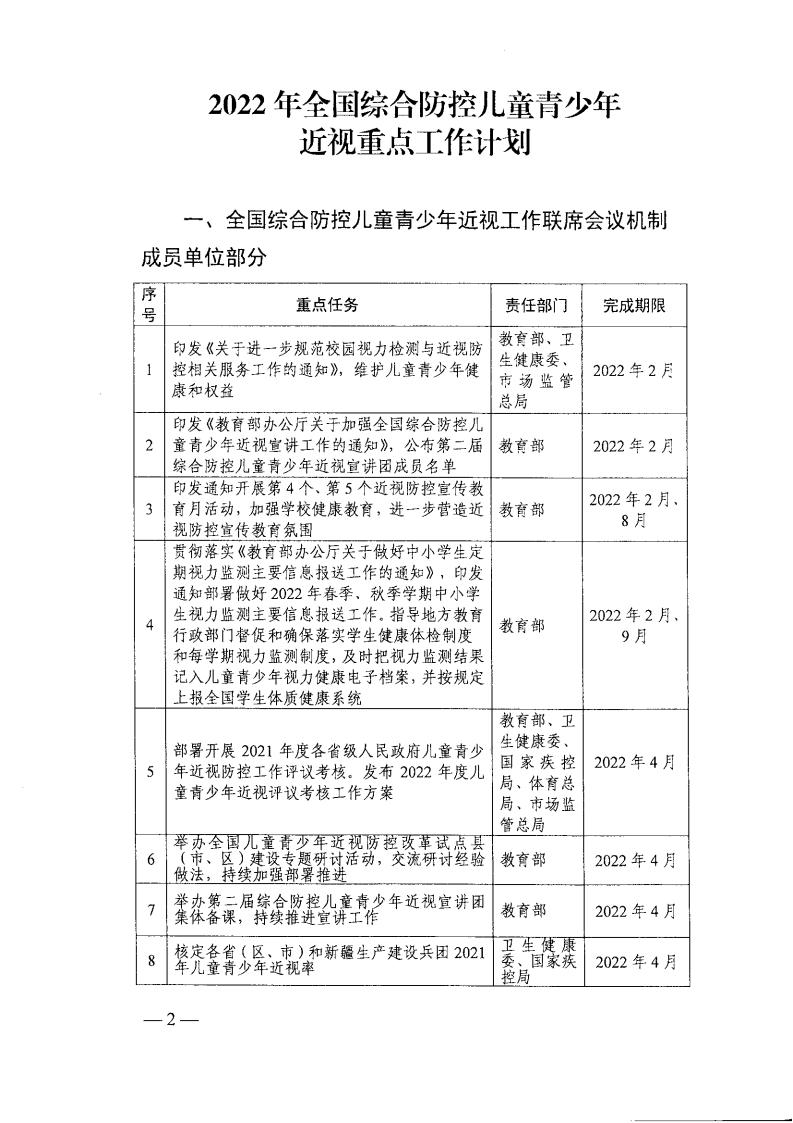 教育部办公厅关于印发《2022年全国综合防控儿童青少年近视重点工作计划》的通知(教体艺厅函[2022]14号)